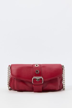 Convertible Strap Buckled Faux Leather Purse