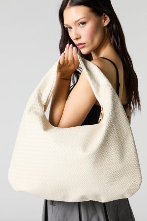 Faux Leather Large Hobo Shoulder Bag
