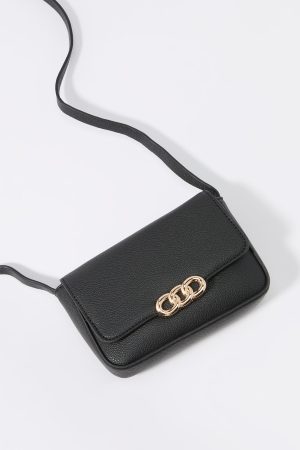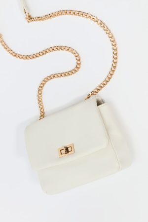 Faux Leather Metal Clasp Crossbody Purse