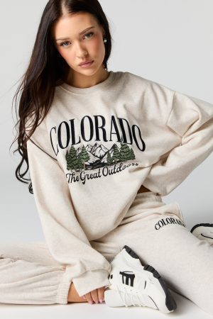 Oversized City Twill Embroidered Fleece Sweatshirt