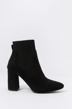 Faux Suede Ribbed Knit Heeled Boot