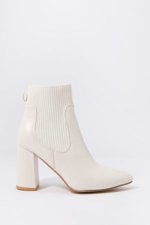 Faux Leather Ribbed Knit Heeled Boot