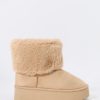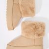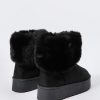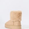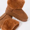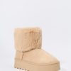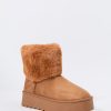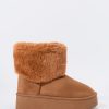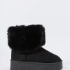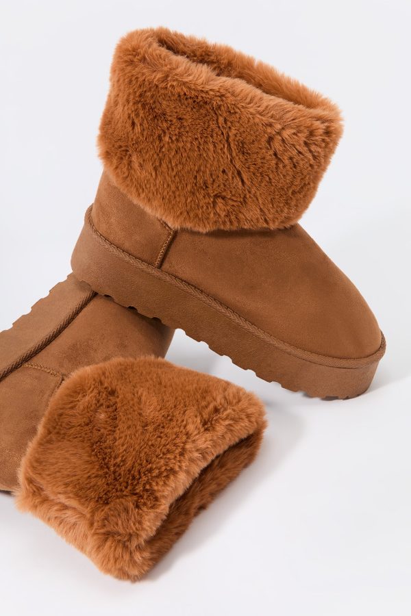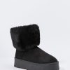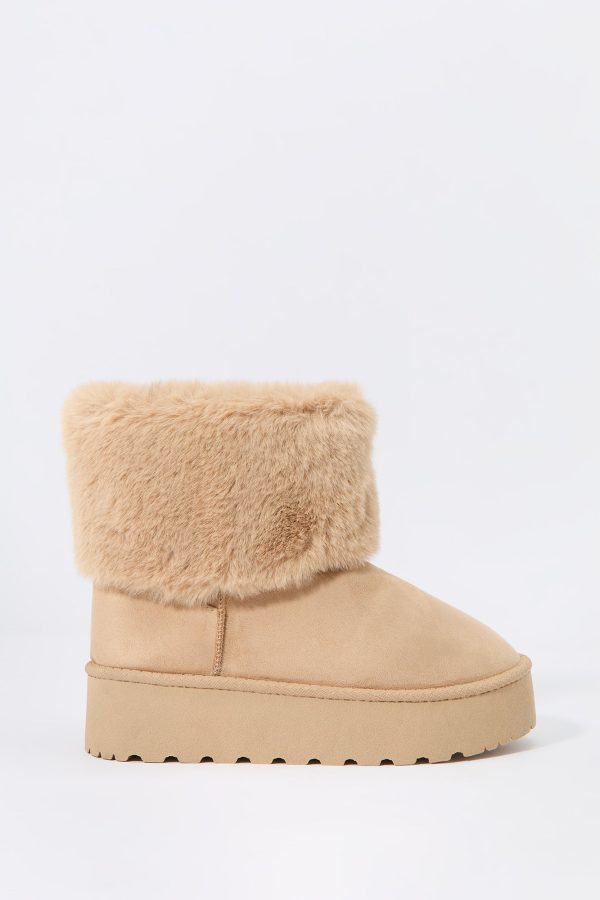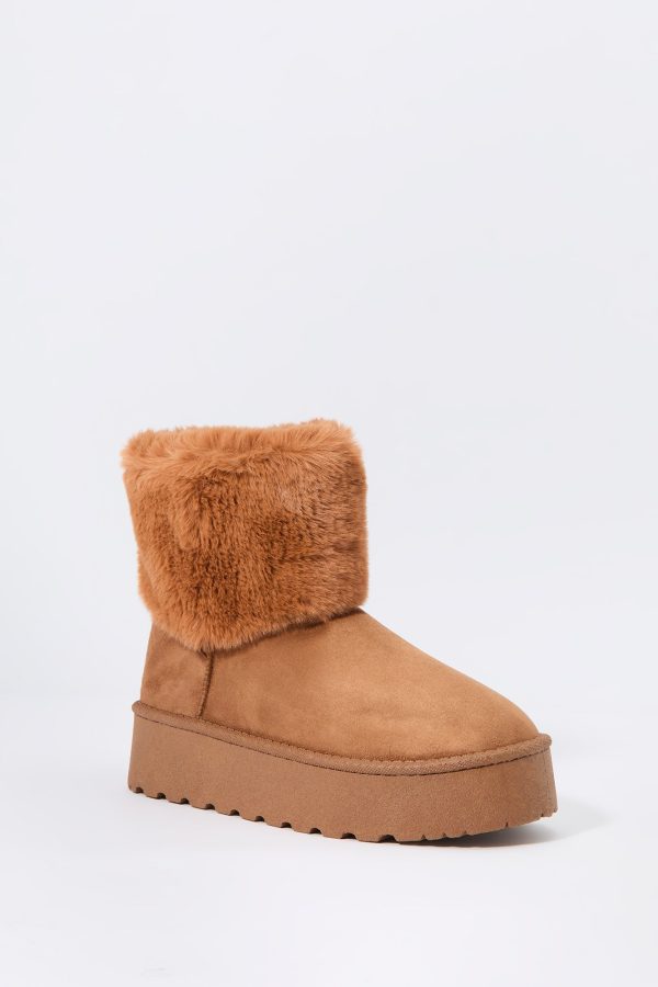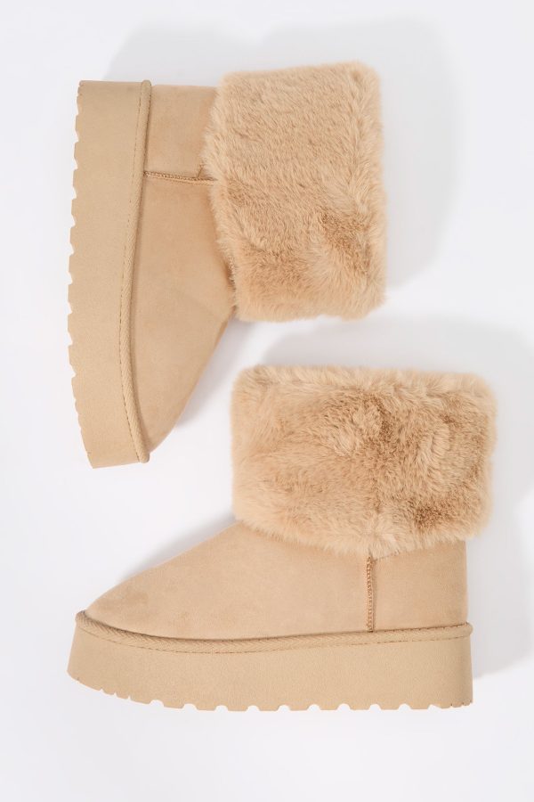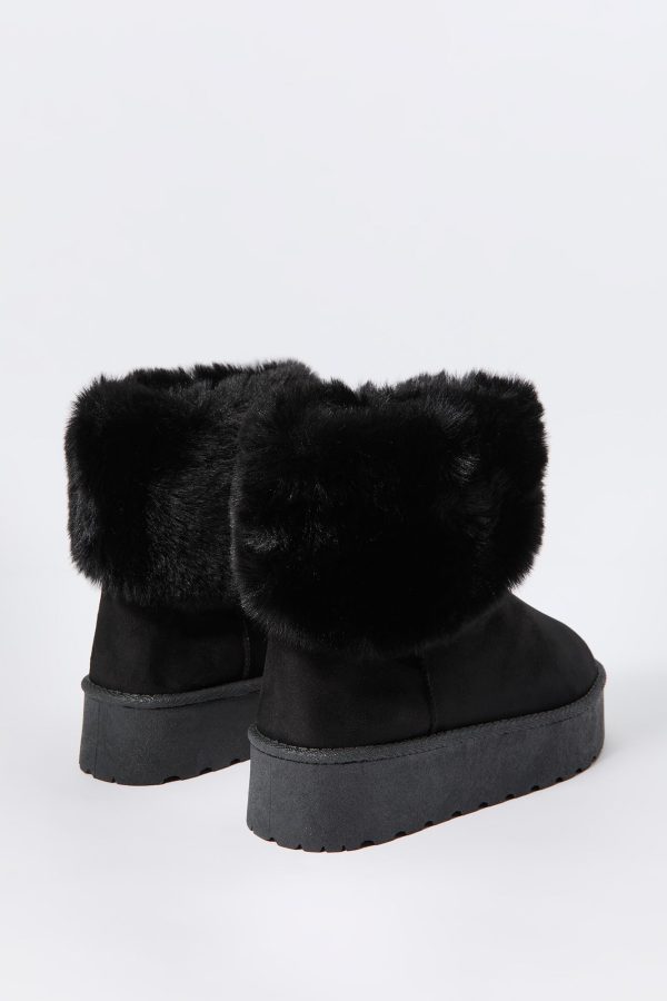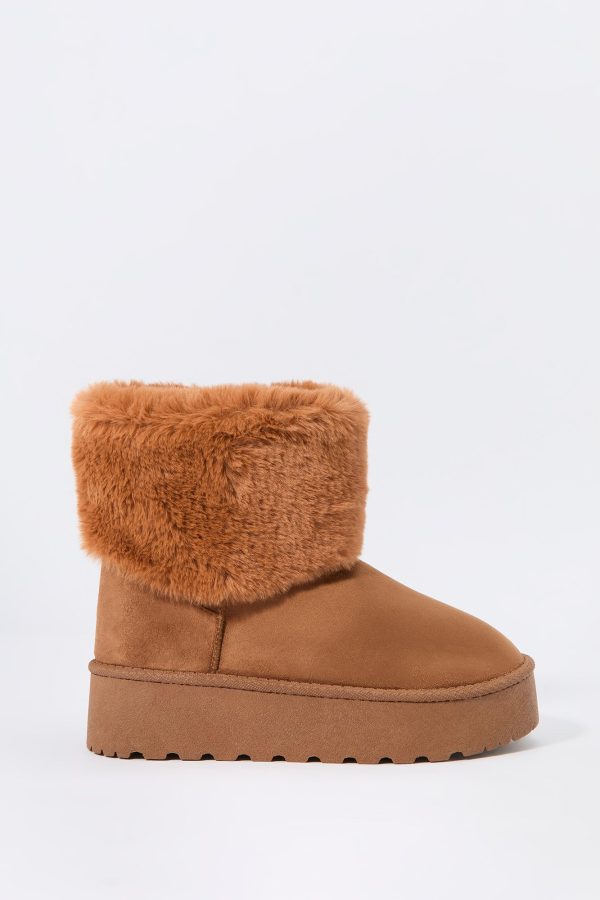 Hey, cozy girl! This fierce footwear is a new season must-have. This boot features faux-suede material, faux-fur collar, and platform sole.