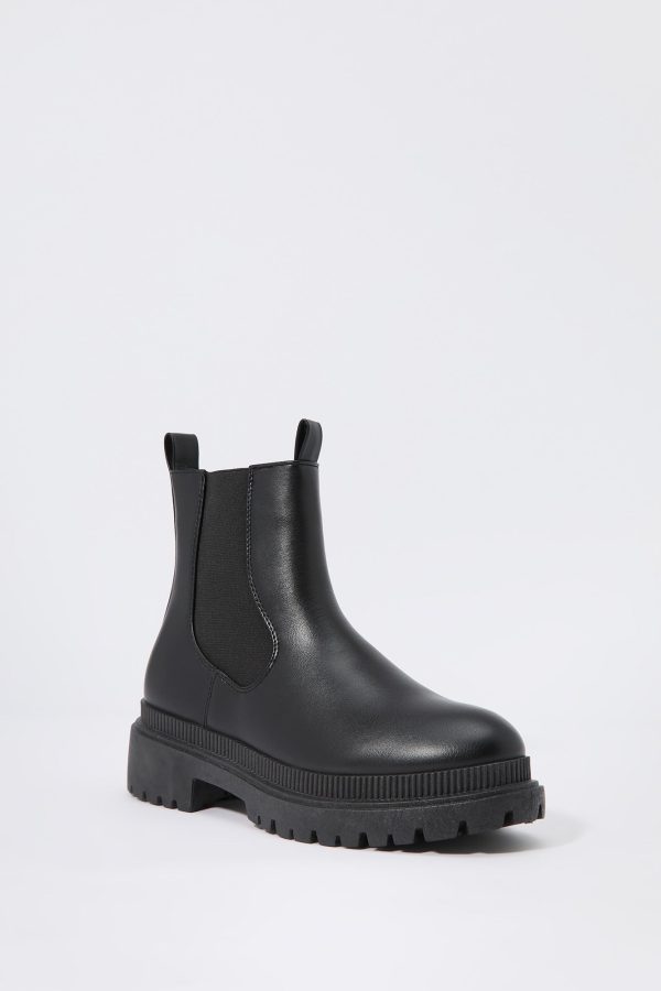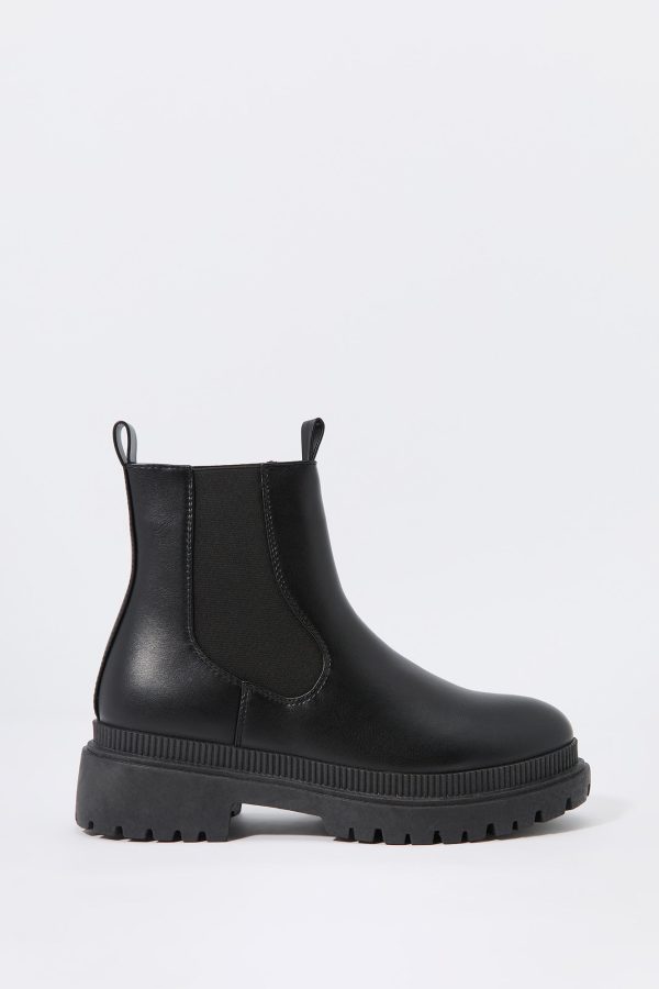 These boots are ready to take on all your new season adventures in style. This boot features faux-leather material, lug sole, and pull tab.