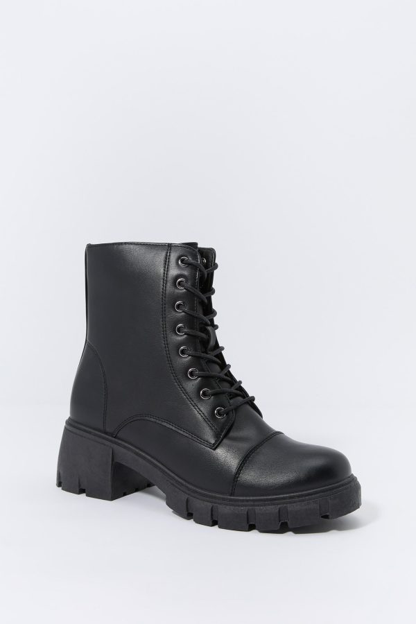 Faux Leather Lace Up Boot