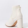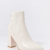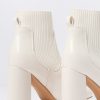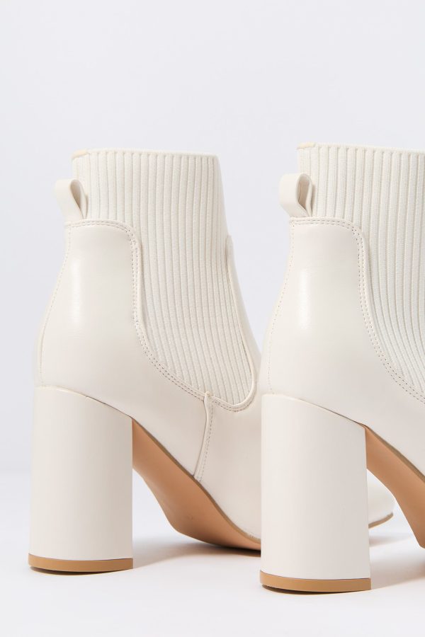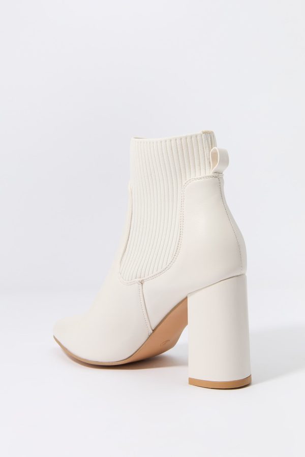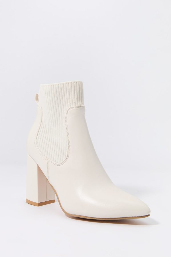 These boots were made for strutting. This boot features faux-leather and ribbed knit material, pointed toe, and block heel.