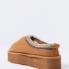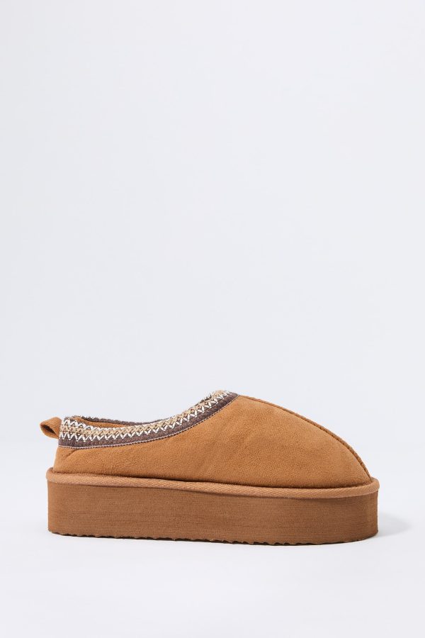 From running errands to lounging around the house, these slipper booties have us hooked. This shoe features faux-suede material, embroidered trim, platform sole, and slip-on construction.