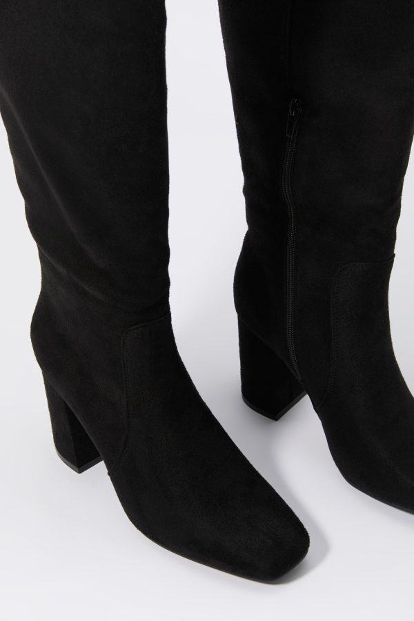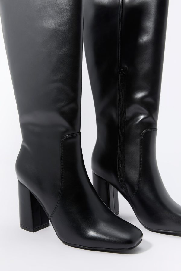 These boots were made for strutting. This boot features knee-high length, square toe, side zipper closure, and block heel.