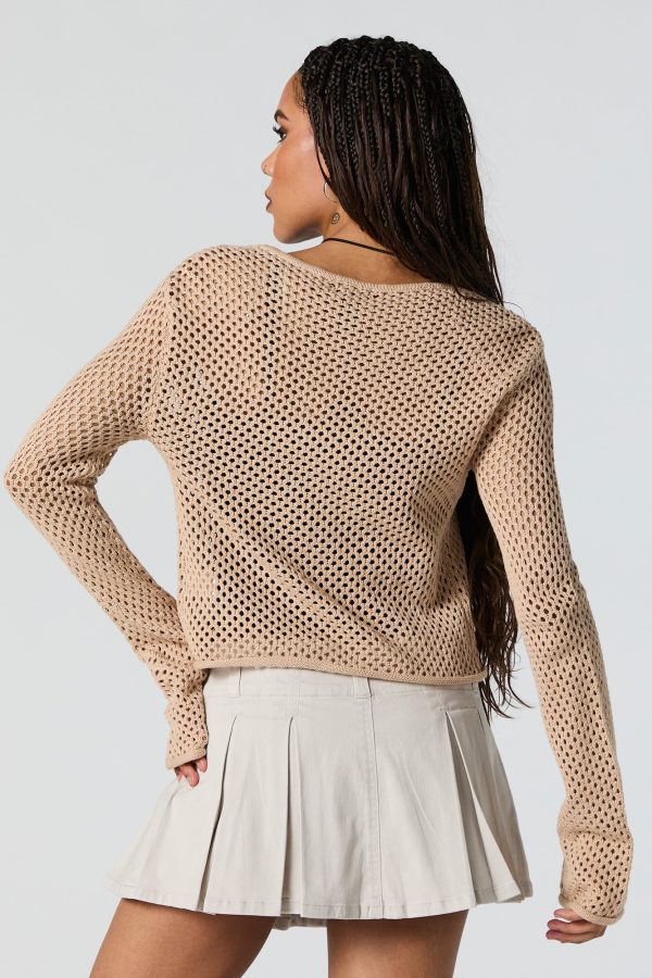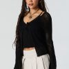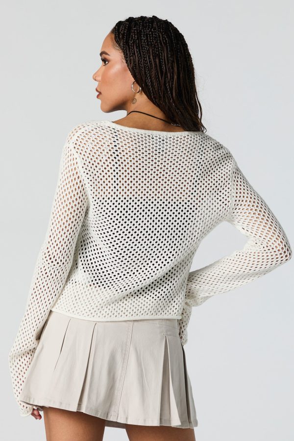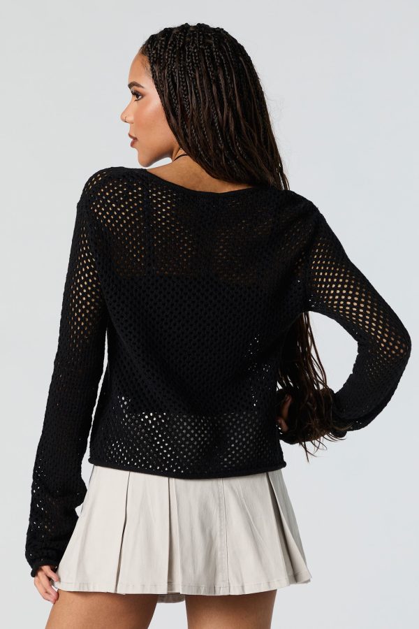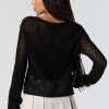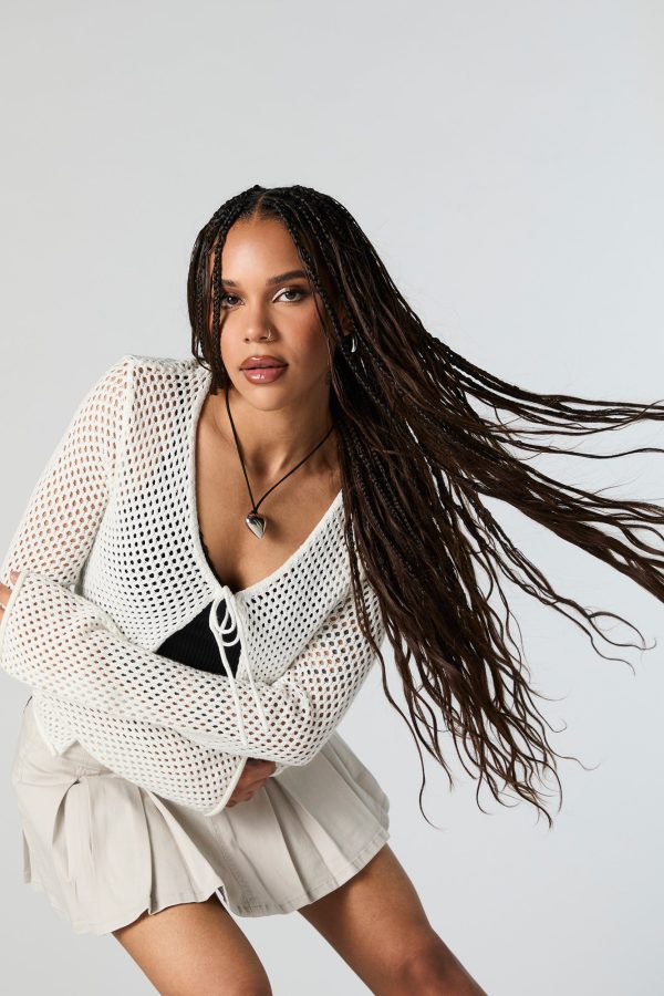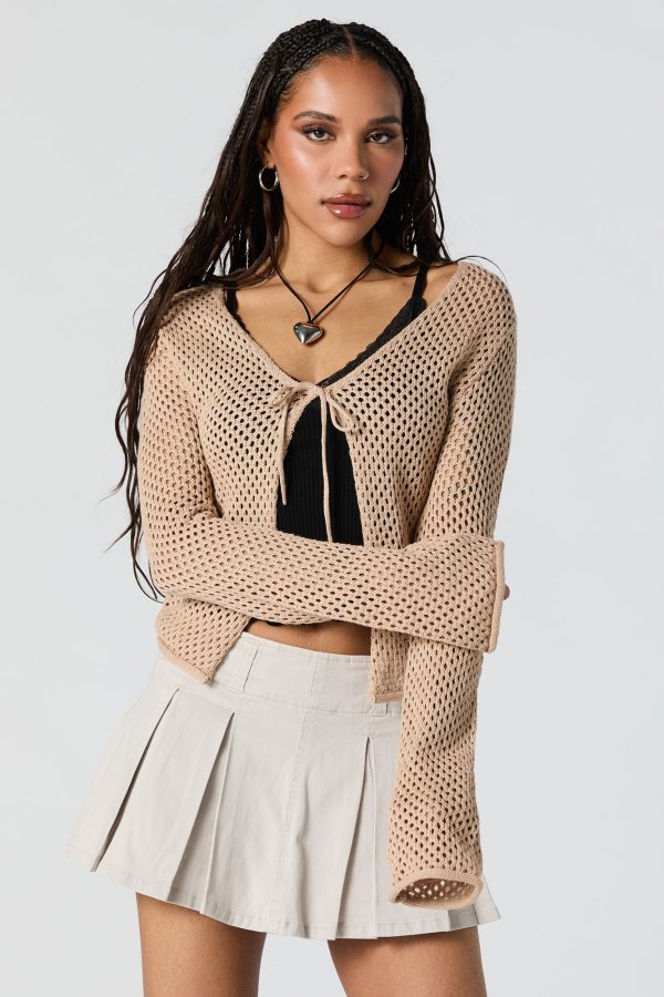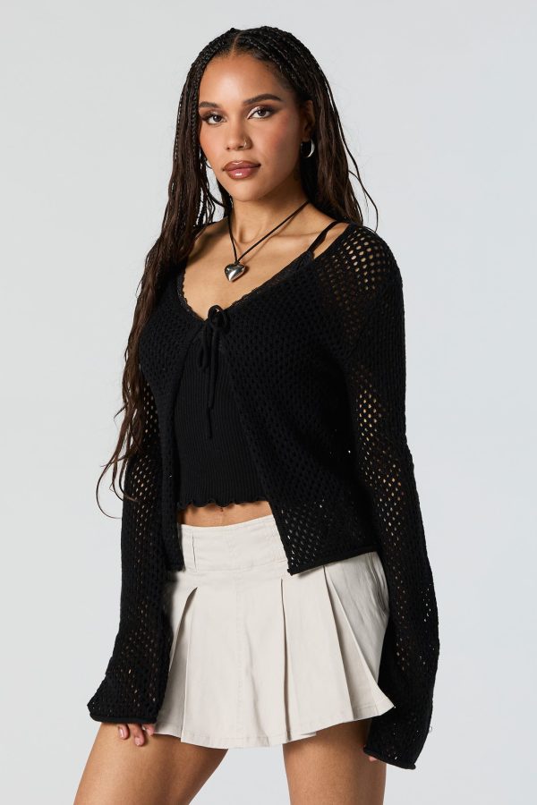 It’s all about the layers. This cardigan features open knit material, self-tie front, flyaway construction, and long sleeves.