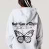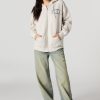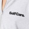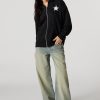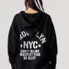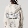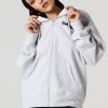 We’ve got your loungewear on lock. This hoodie features oversized fit, fleece material, front puff print, zip-up front, drawstring hood, split kangaroo pocket, and long sleeves.