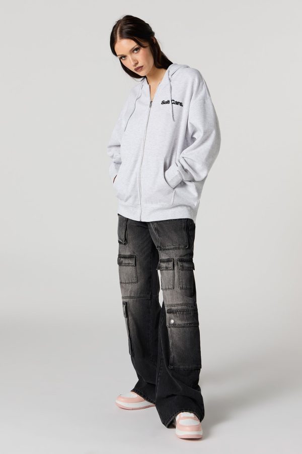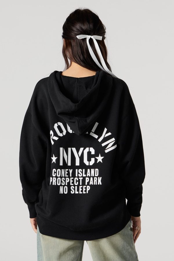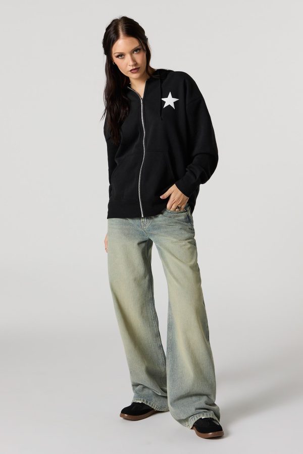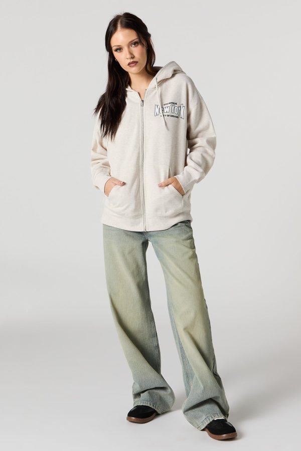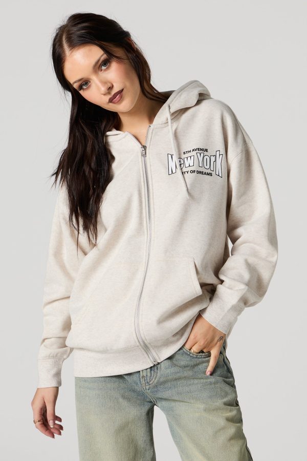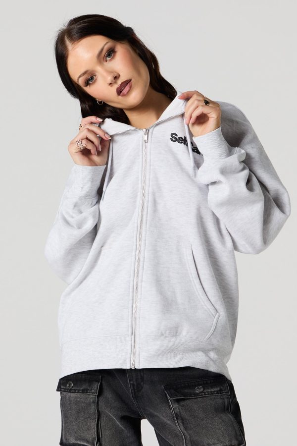 Oversized Puff Print Graphic Zip-Up Fleece Hoodie