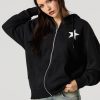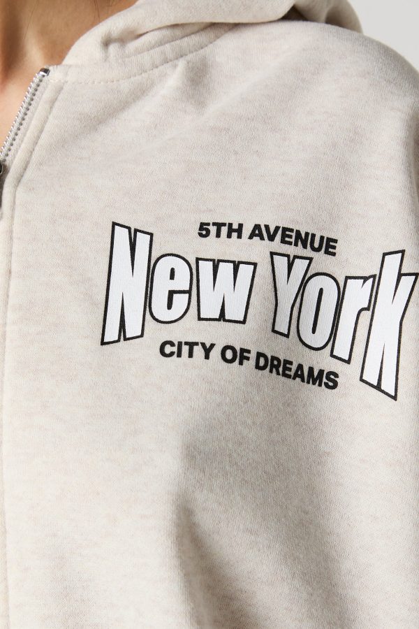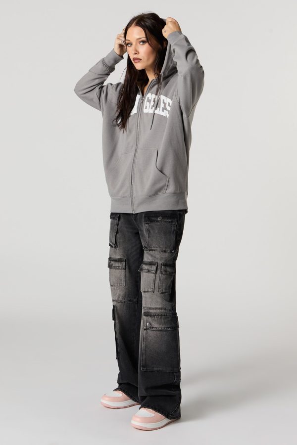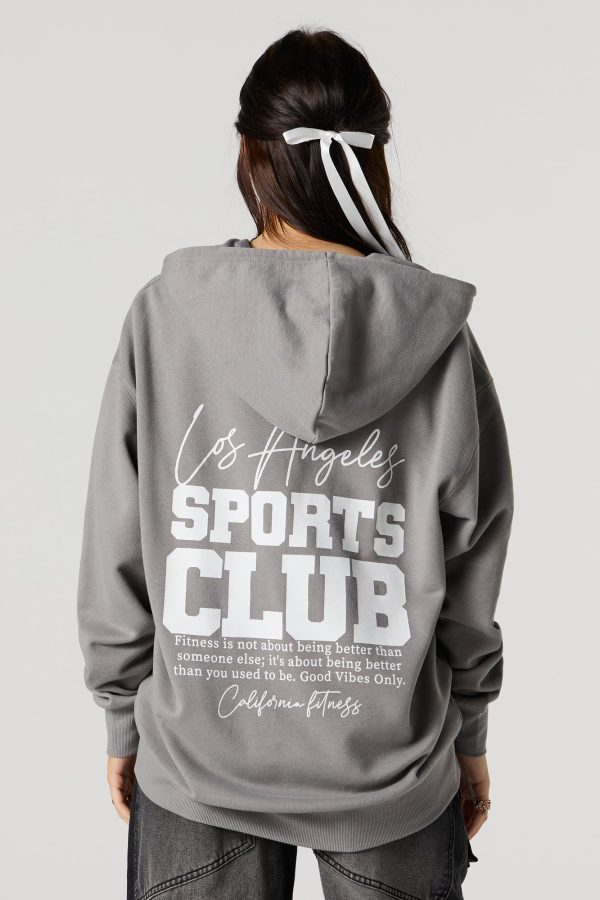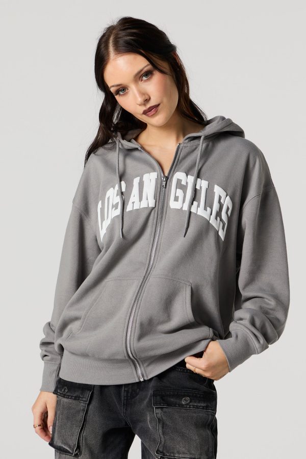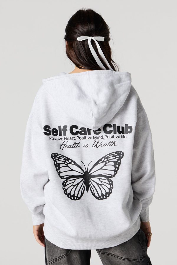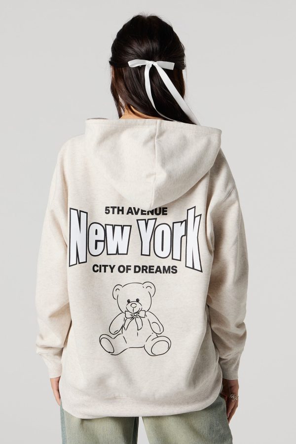 Oversized Puff Print Graphic Zip-Up Fleece Hoodie